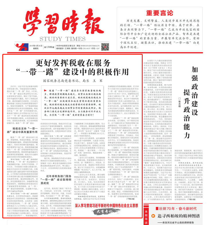当前和今后一个时期,税务部门将继续深入贯彻习近平总书记重要指示精神,推动“一带一路”建设取得更大成效。